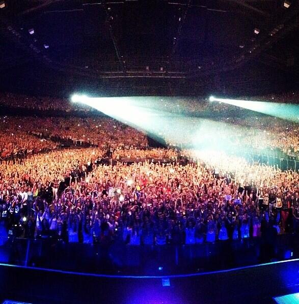 01/Mayo TMH Tour: Harry le dijo al público que alzaran sus brazos para que les tomará una foto, en Bulgaria
